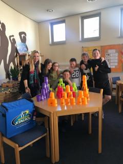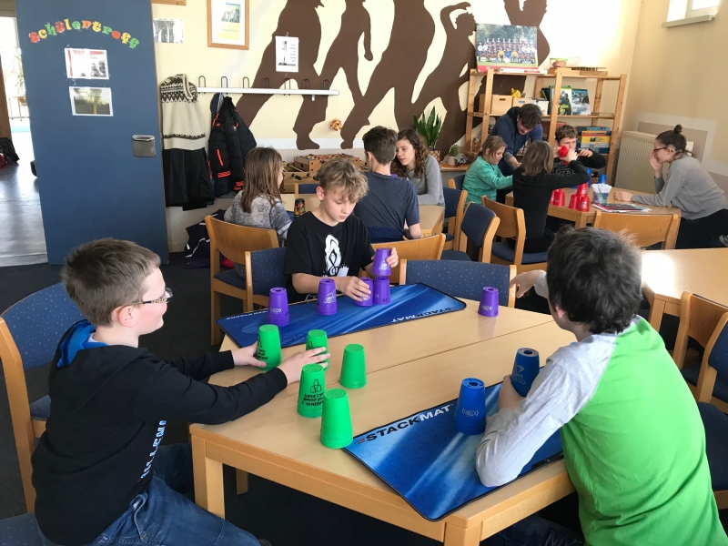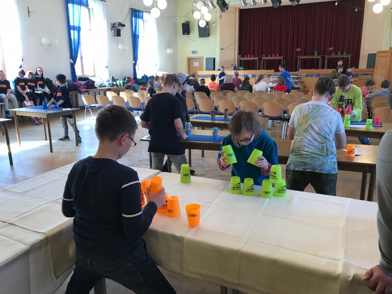 Am 09.04.18 durften bereits die besten Teilnehmer der AG an dem zweiten durchgeführten Wettkampf im Schulzentrum Könnern teilnehmen, den die Schulsozialarbeit des SOS Kinderdorf e.V. Bernburg, nunmehr als Zweiergespann, bestehend aus den Schulen des Schulzentrums „Stadt Könnern“ und der Förderschule „Otto Dorn“, in Zusammenarbeit mit der Stadt Könnern im Kulturhaus Könnern ausrichteten. Für unsere teilnehmenden Schüler Pascal Jaster, Christopher Raschdorf, Lara Schönstedt, Kim Wesemann, Max Müller und Jannes Ray Braune, war der Wettkampf trotz ausbleibender Platzierungen dennoch ein großes Erfolgserlebnis, bei der Spaß und Ehrgeiz im Vordergrund standen. Die Schüler nahmen sich jedoch vor, noch mehr zu üben, um im nächsten Jahr noch bessere Ergebnisse zu erzielen. Max Müller erreichte im 3-3-3 Wettkampf bereits Platz 18 von insgesamt 48 Teilnehmern, Jannes Ray Braune den 25. Platz und Kim Wesemann den 26. Dies deutet darauf hin, dass im nächsten Wettkampf nur noch bessere Ergebnisse erreicht werden können. Der Spaß am Becherstapeln steht natürlich weiterhin an erster Stelle und bereitet den Kindern große Freude auch untereinander Bestzeiten zu erreichen.