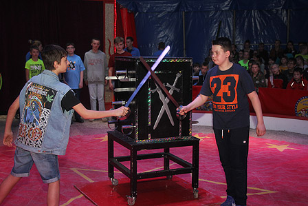 Hühnershow, Kunststücke mit Kleintieren, Schwerterkunst,