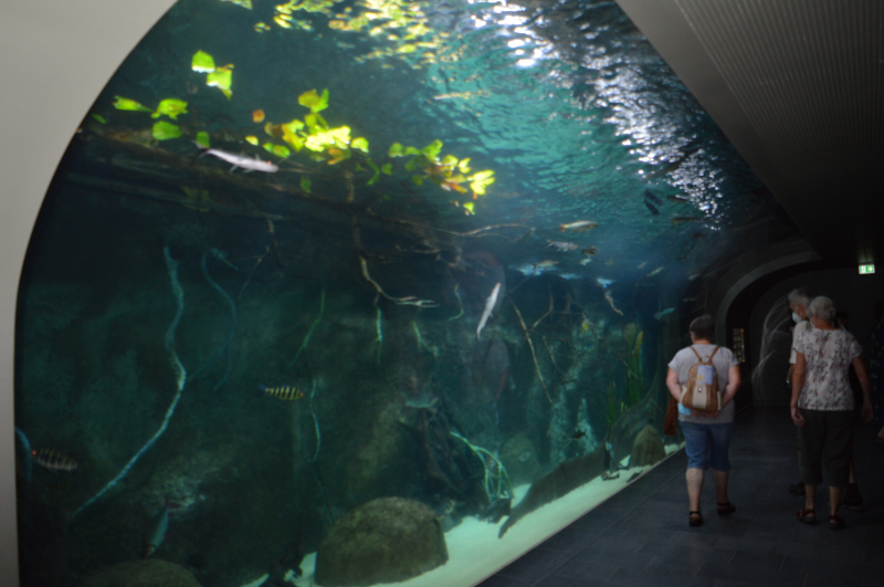 Ganz besonders freuten wir uns auf das neu gestaltete Aquarium. Wir standen staunend in der Mitte des Gebäudes, umgeben von einem riesigen Panoramabecken mit bunten Korallen, lustigen Fischen, Rochen und dem gefürchtetsten Raubfisch der Meere-dem Hai.